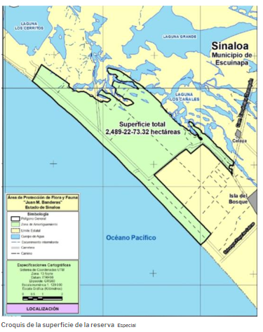 Sin embargo, a ocho meses de aquel “manotazo”, la reserva Juan M. Banderas continúa en el limbo jurídico. El área carece de un programa de manejo, de plan de actividades permitidas y división de zonas (uso y protección), de acuerdos de coordinación con el gobierno de Sinaloa, el municipio de Escuinapa y sectores privado y social de la región, conforme a las disposiciones marcadas en la Ley General del Equilibrio Ecológico y Protección al Ambiente.
